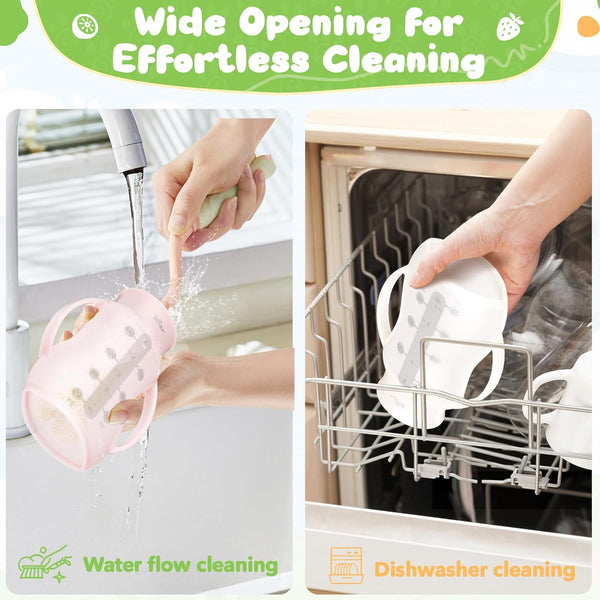 【Easy Filling & Clean-Up】With a 1.77'' wide neck and the unique self-standing structure of the complementary food pouch allows you to place it firmly on the table for easy filling without worrying about collapsing or messing. These pouches are also fully compatible with dishwasher cleaning. Freeing up your hands and making them the perfect choice for busy moms.
