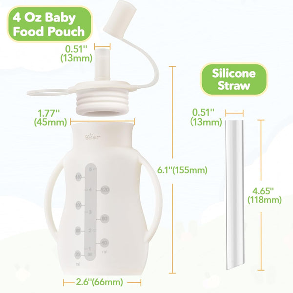 【Thought Gift】The baby food storage solution includes two baby food containers, each holding 4oz, offering a versatile feeding option. Baby food pouches serve your babies from 6 months or older. This reusable baby pouch is a wonderful gift for new parents, a baby shower, or a baby's first birthday.