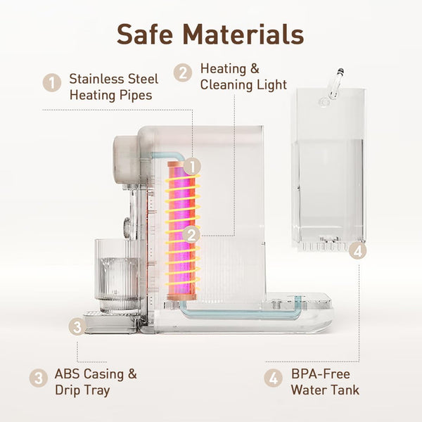Food-grade stainless steel heating system and BPA-free ASB water tank ensure safe, clean water every time, perfect for families.