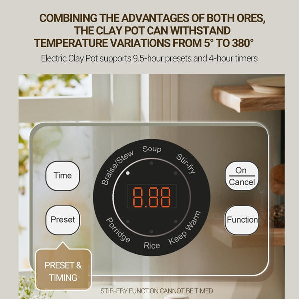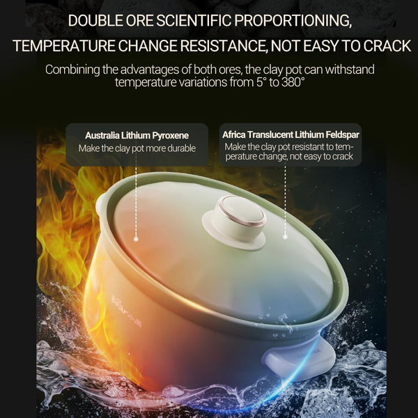 • PRESET & TIMING: Bear Electric Clay Pot supports 9.5-hour presets and 4-hour timers, so you can either have it start on a delayed basis or customize the cooking time. The electric clay pot has two modes, automatic keep warm and manual keep warm, the food will automatically turn to keep warm mode when it is ready to be stewed, you can also choose the keep warm function individually.
