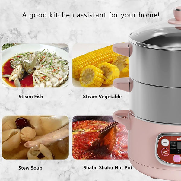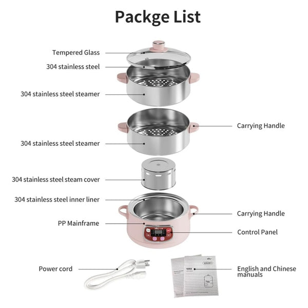 • Multifunctional stainless steel food steamer: steam, boil, simmer, etc