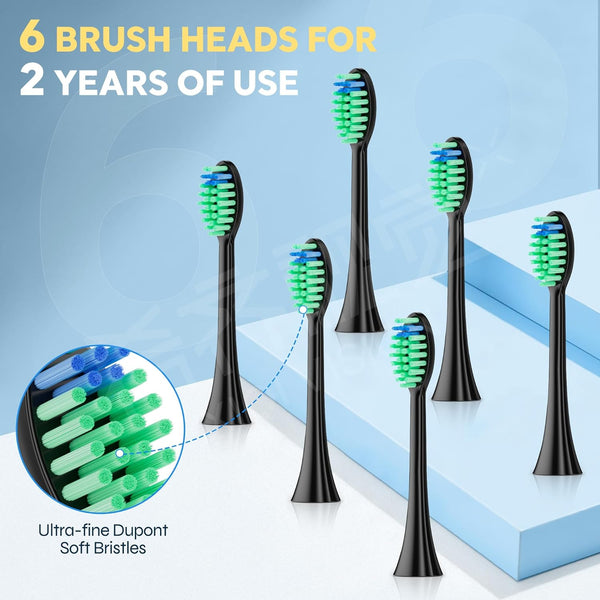 【Replaceable Soft Bristles for Long-Lasting Use】Experience the convenience of 6 replaceable brush heads, ensuring you won't need to frequently order replacements. Our soft bristles provide effective teeth cleaning while being gentle on your oral tissues, reducing the risk of potential damage to your teeth and gums.