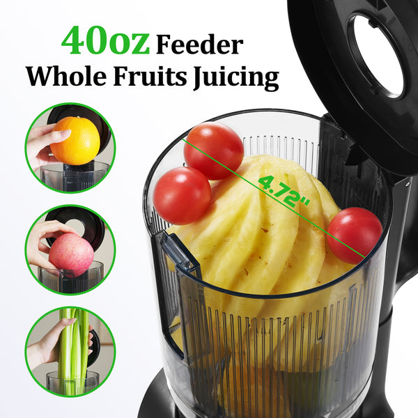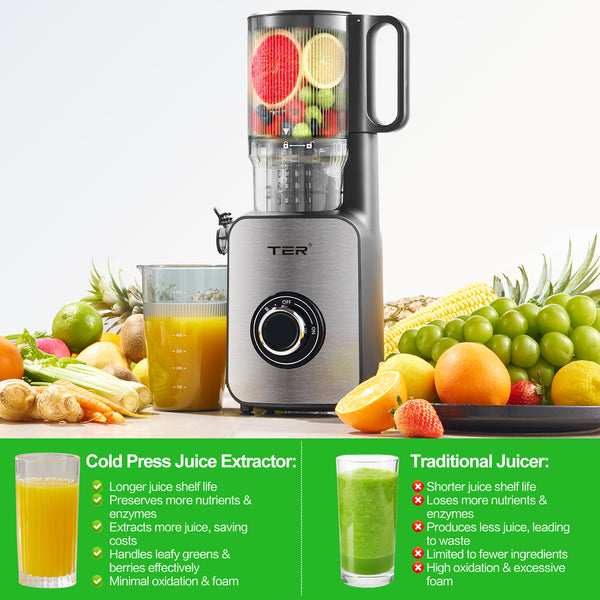TER Juicer Machine, Cold Press Juicer with 4.8" Wide Chute, Slow Masticating for Whole Vegetables & Fruits