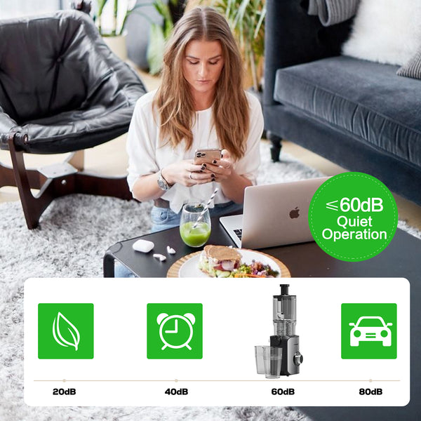 Operating at approximately 60 dB, this juicer is quiet enough for early mornings and late nights. Make fresh kale juice at sunrise or almond milk after bedtime without waking the household.